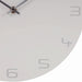 白×シルバーが美しい掛け時計です。時計のベーシックデザインをもとに、白いシンプルなデザインは白い壁に設置すれば溶けこんで主張しない静かなインテリアとなります