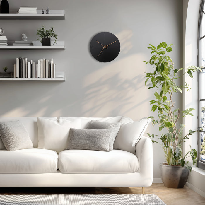 十字デザインのモダンブラック×木目調の針がオシャレな掛け時計