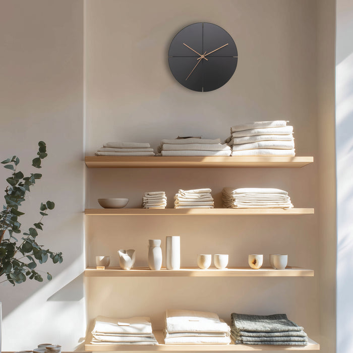 時計自体がオブジェとして壁にアクセントを持たせ、壁を彩るインテリアとしてもお楽しみいただけます。シンプルにまとまっているので、 リビングに寝室とどんなお部屋にも合わせやすい上品なデザインです。 ご自宅だけでなく店舗のインテリアにもお勧めで、ギフトや贈答品としても最適です。