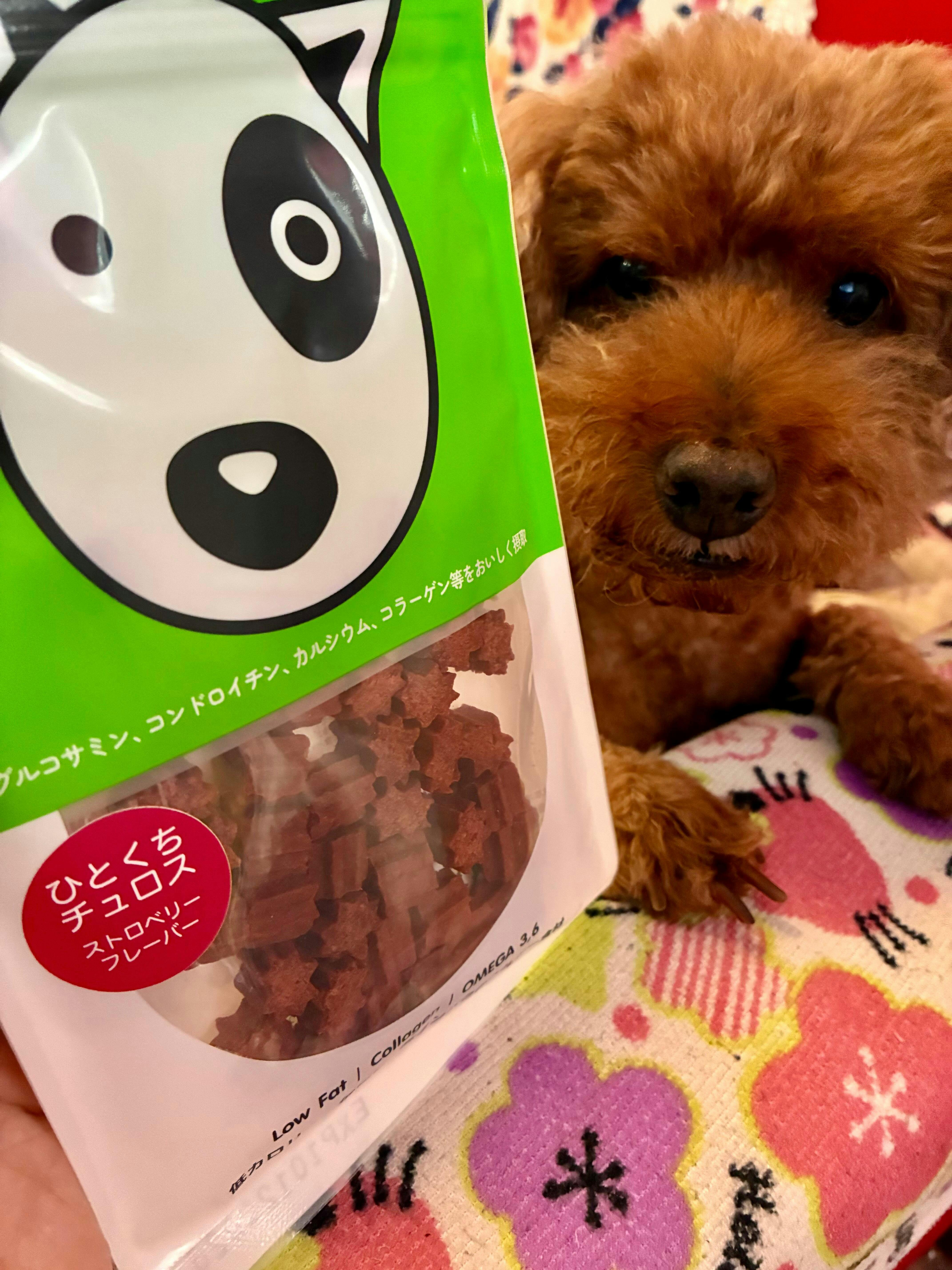ワンちゃんの健康をサポートする成分とともに嗜好性の高いおやつに仕上げました。