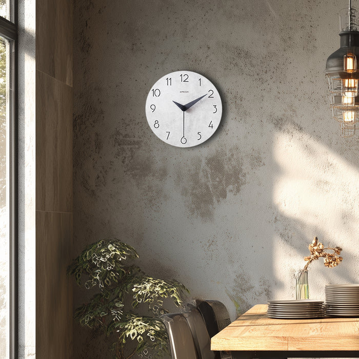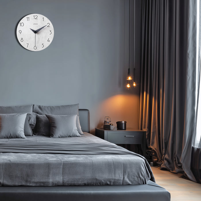 光沢あるコンクリート調の質感と黒い針がアクセントの掛け時計です。モダンでクールな印象の空間を演出し、時計自体がオブジェとして壁にアクセントを持たせ、壁を彩るインテリアとしてもお楽しみいただけます。