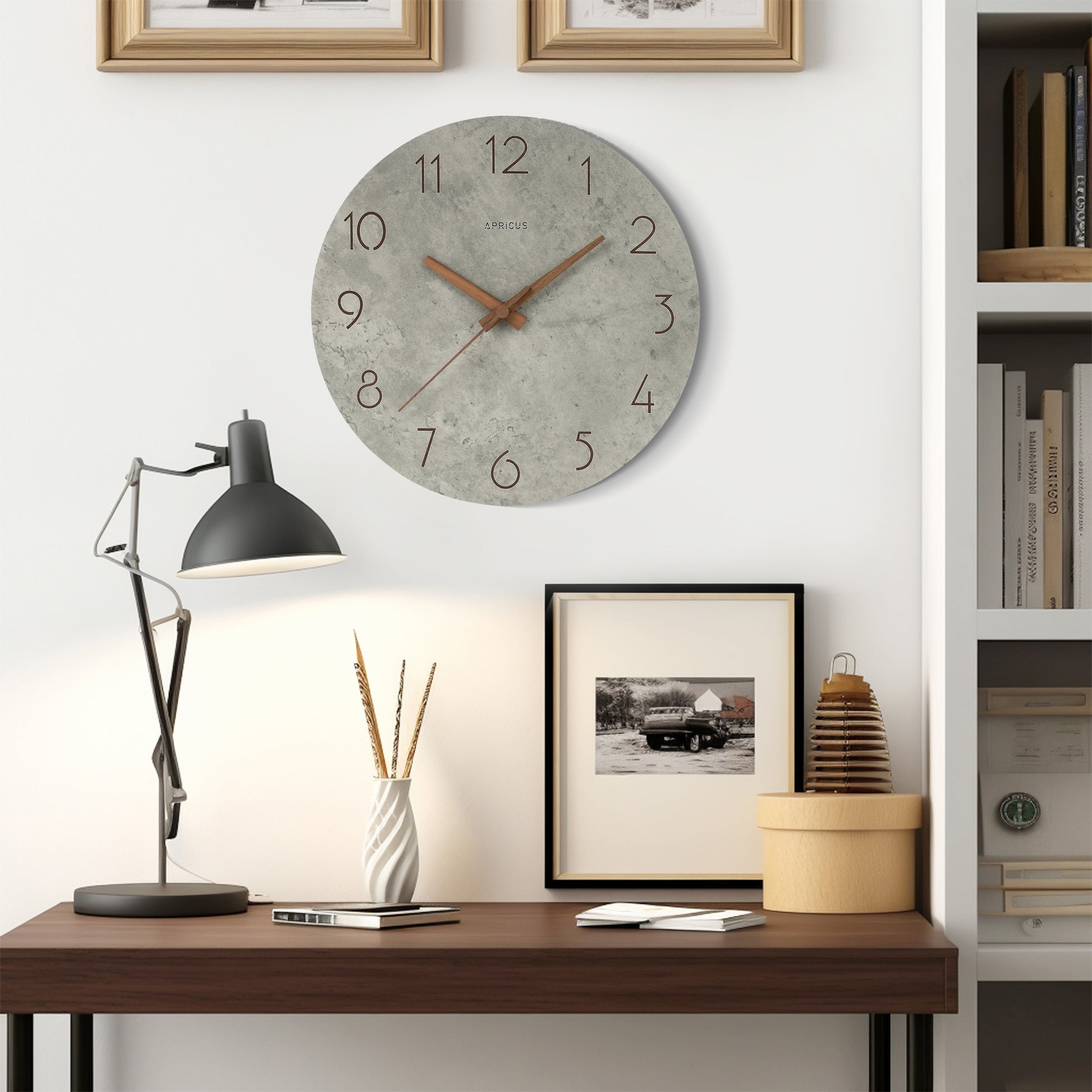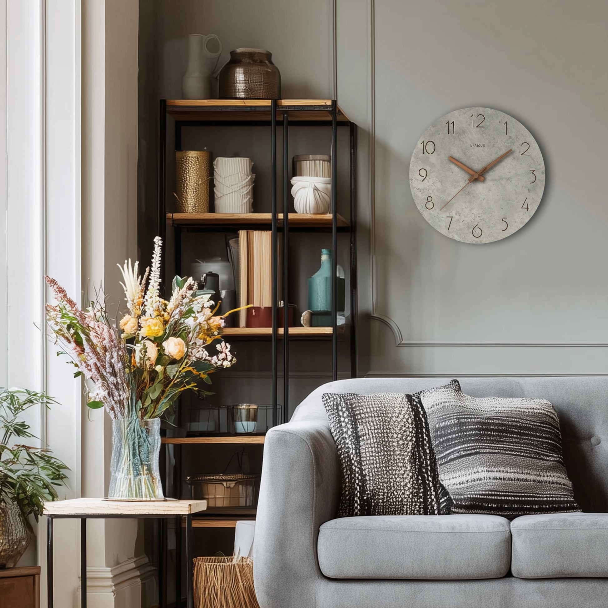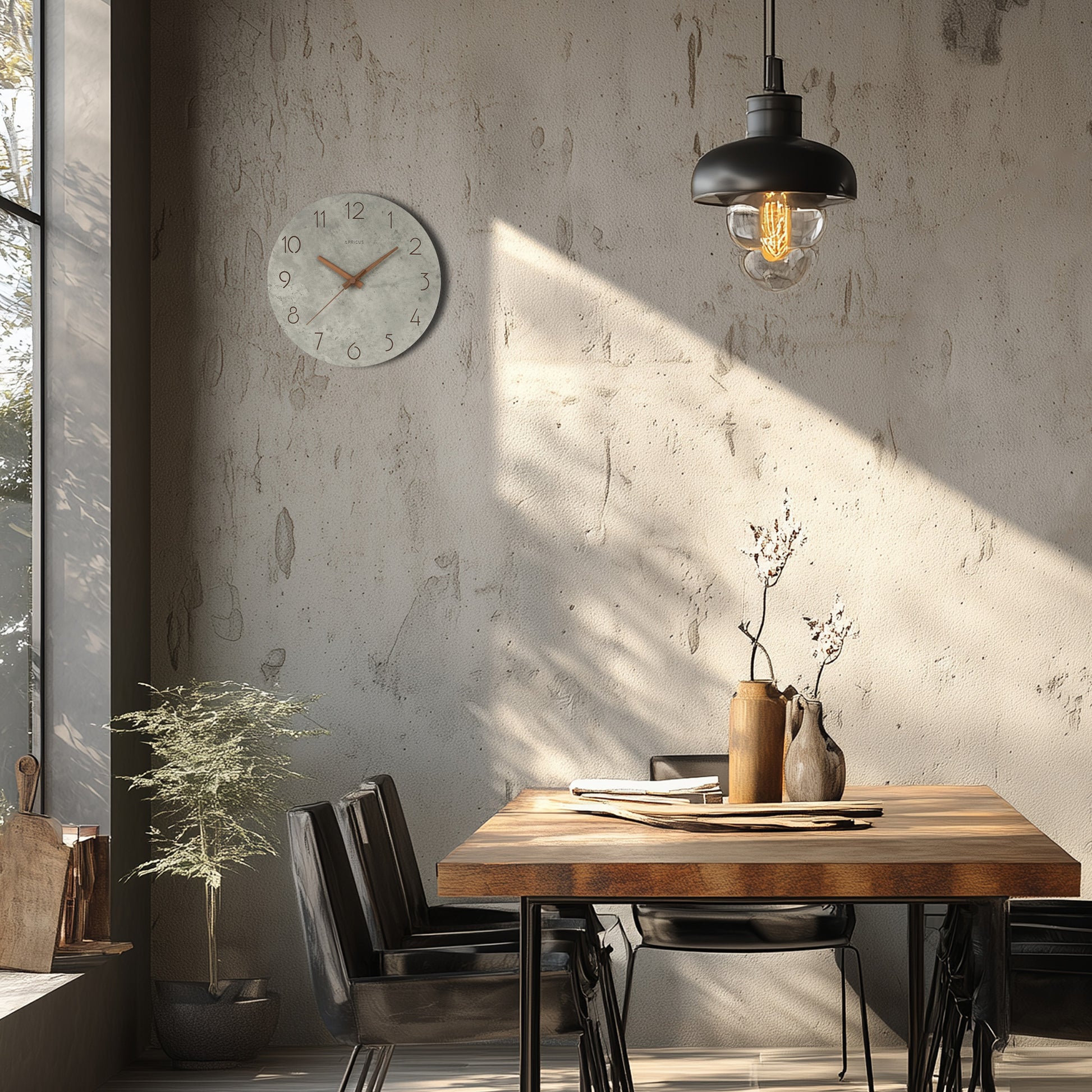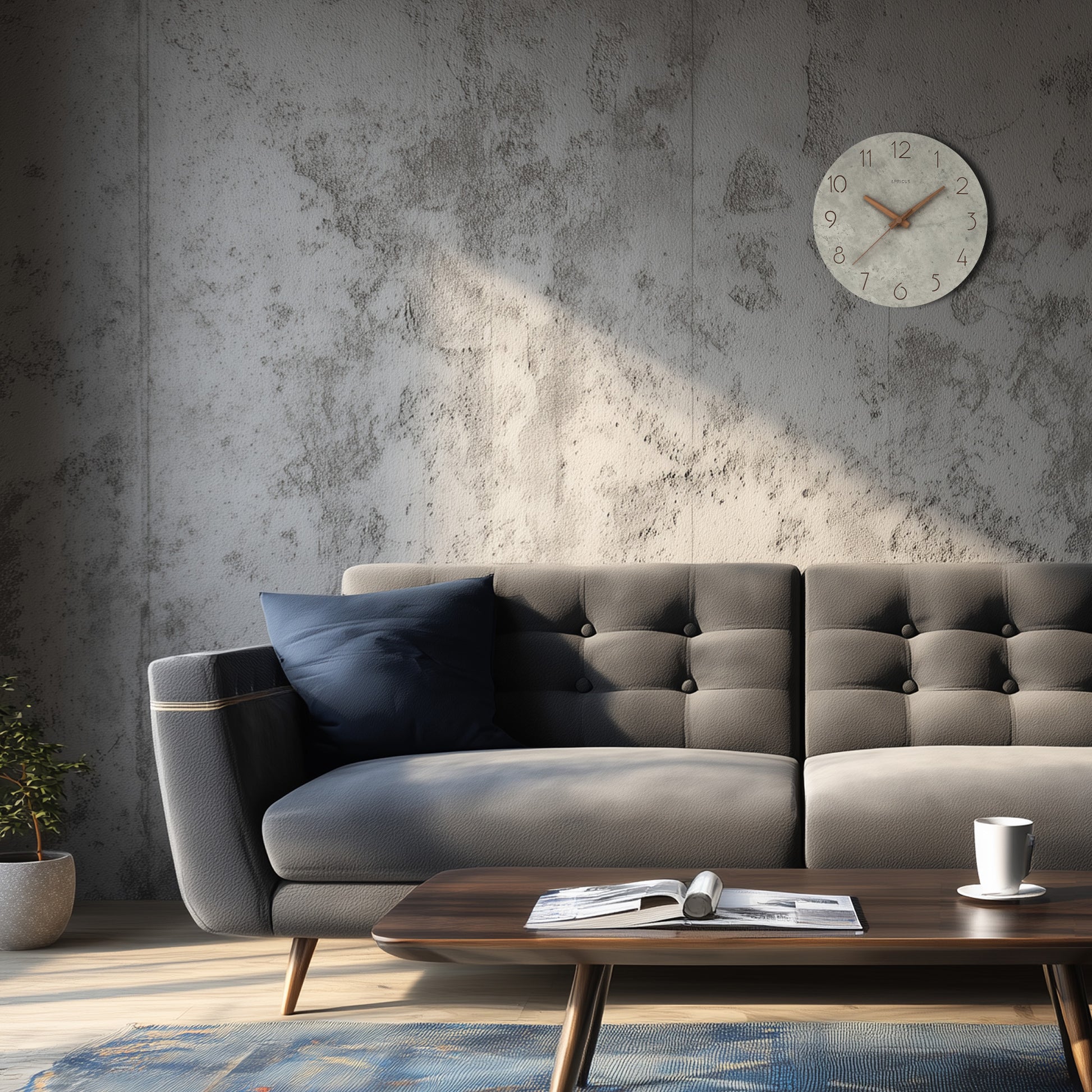 コンクリートの質感×木目調の針が美しい掛け時計