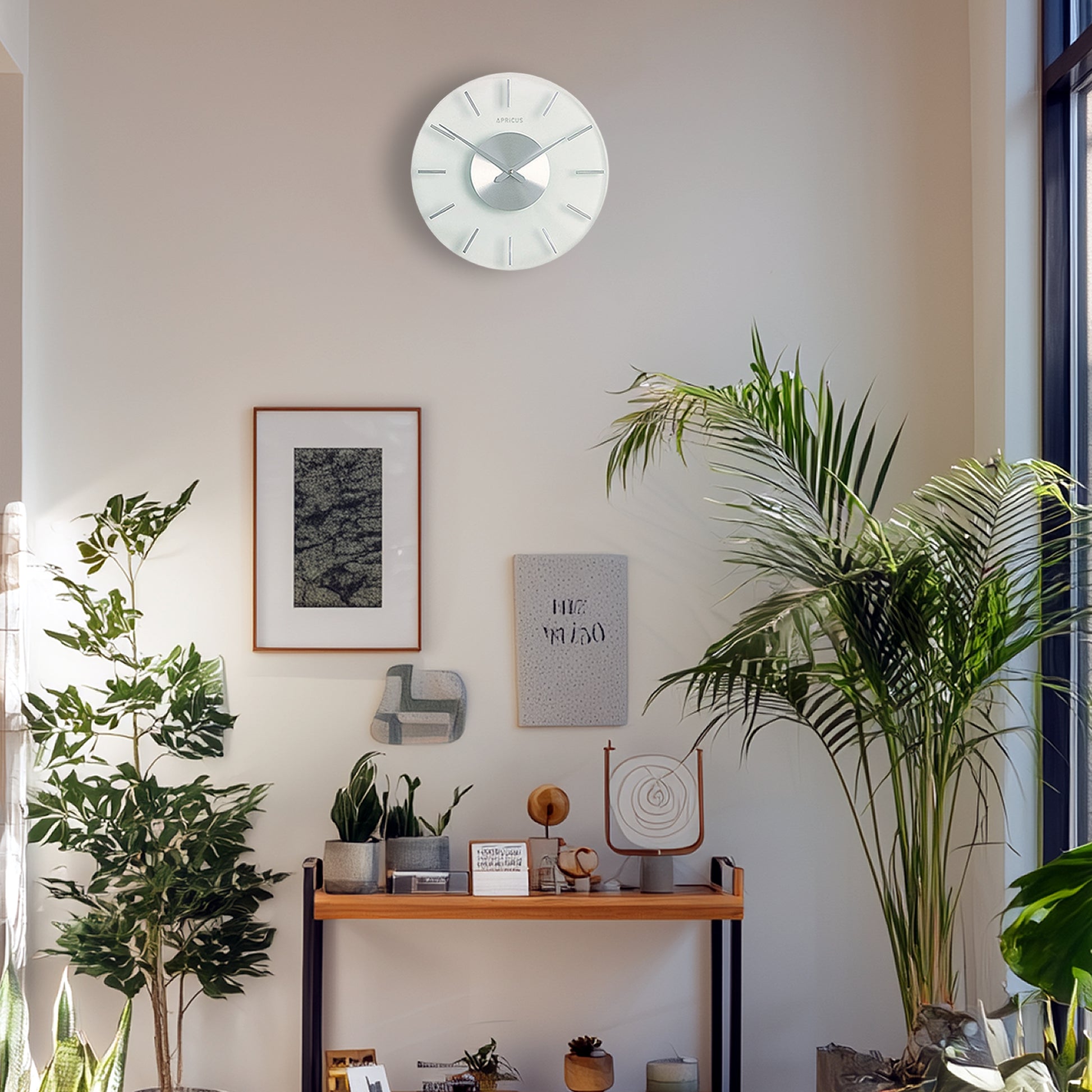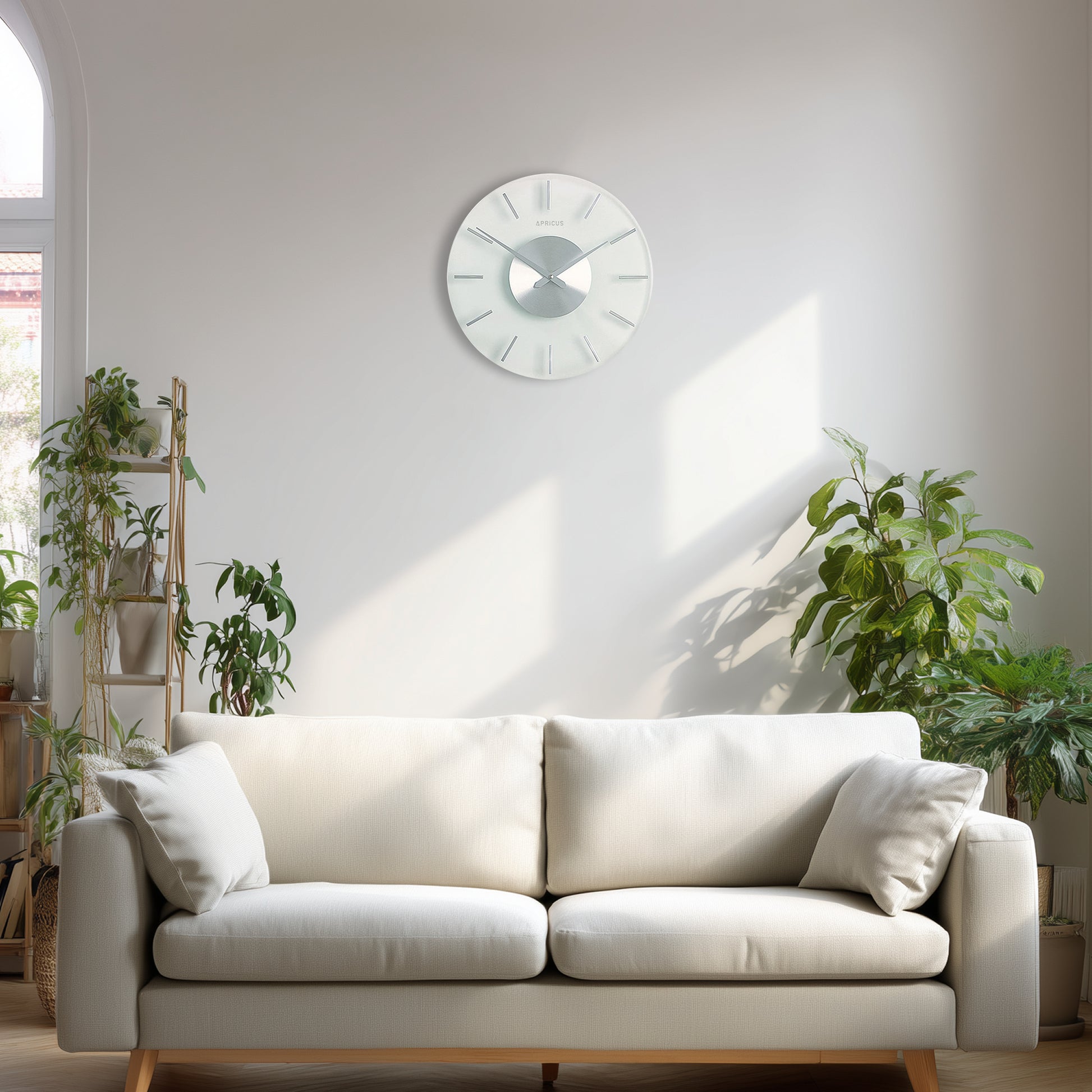 白い壁に掛ければふわりと馴染み、色の濃い壁に掛ければフロストガラスの白さが際立ち、シャープな印象を与えます。 北欧モダン、インダストリアル、モノトーンインテリアなど、あらゆるテイストの空間に、涼やかなアクセントをプラスします。