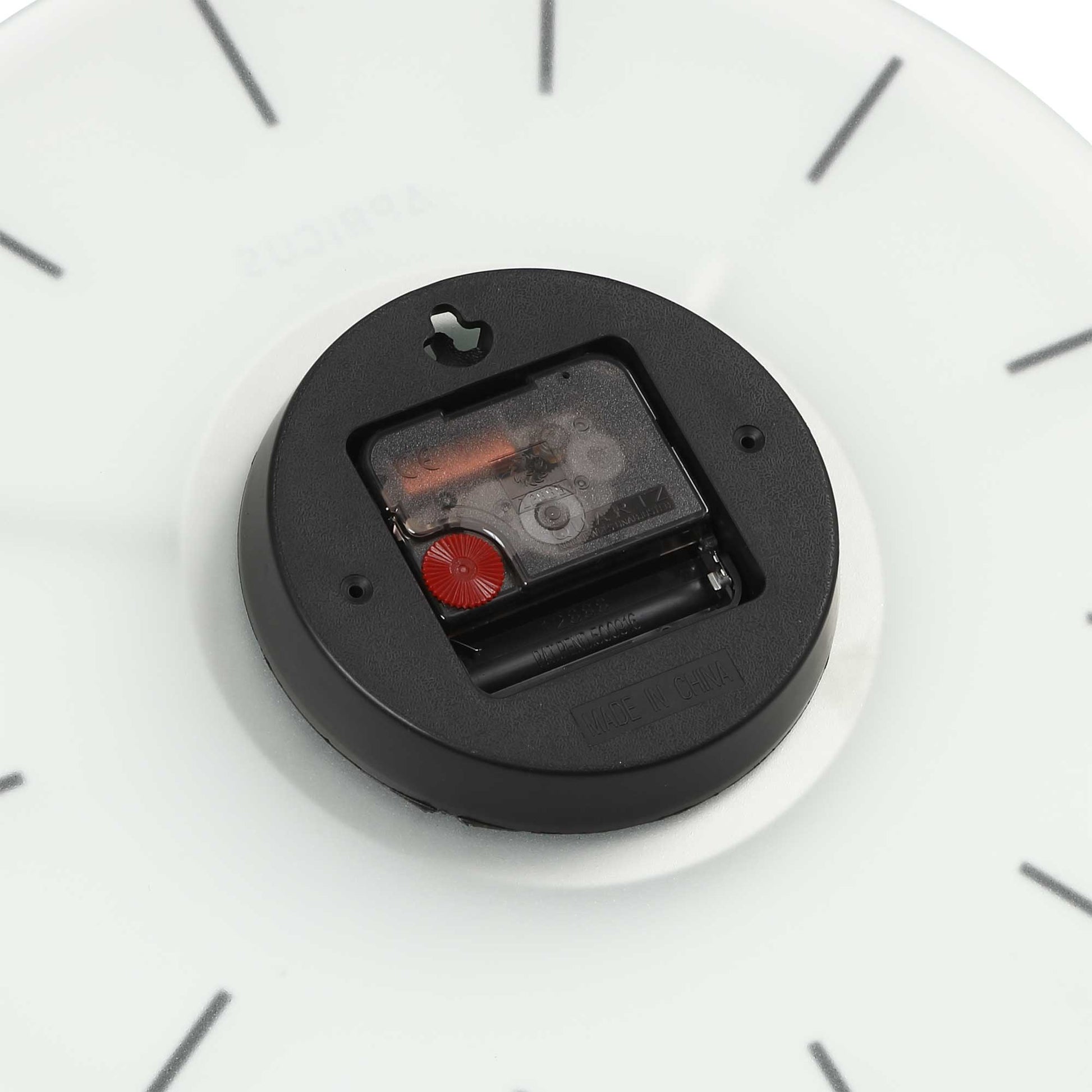 文字盤のベースには、半透明の乳白色すりガラスを使用。壁の色や光を柔らかく通し、圧迫感のない軽やかなデザインです。