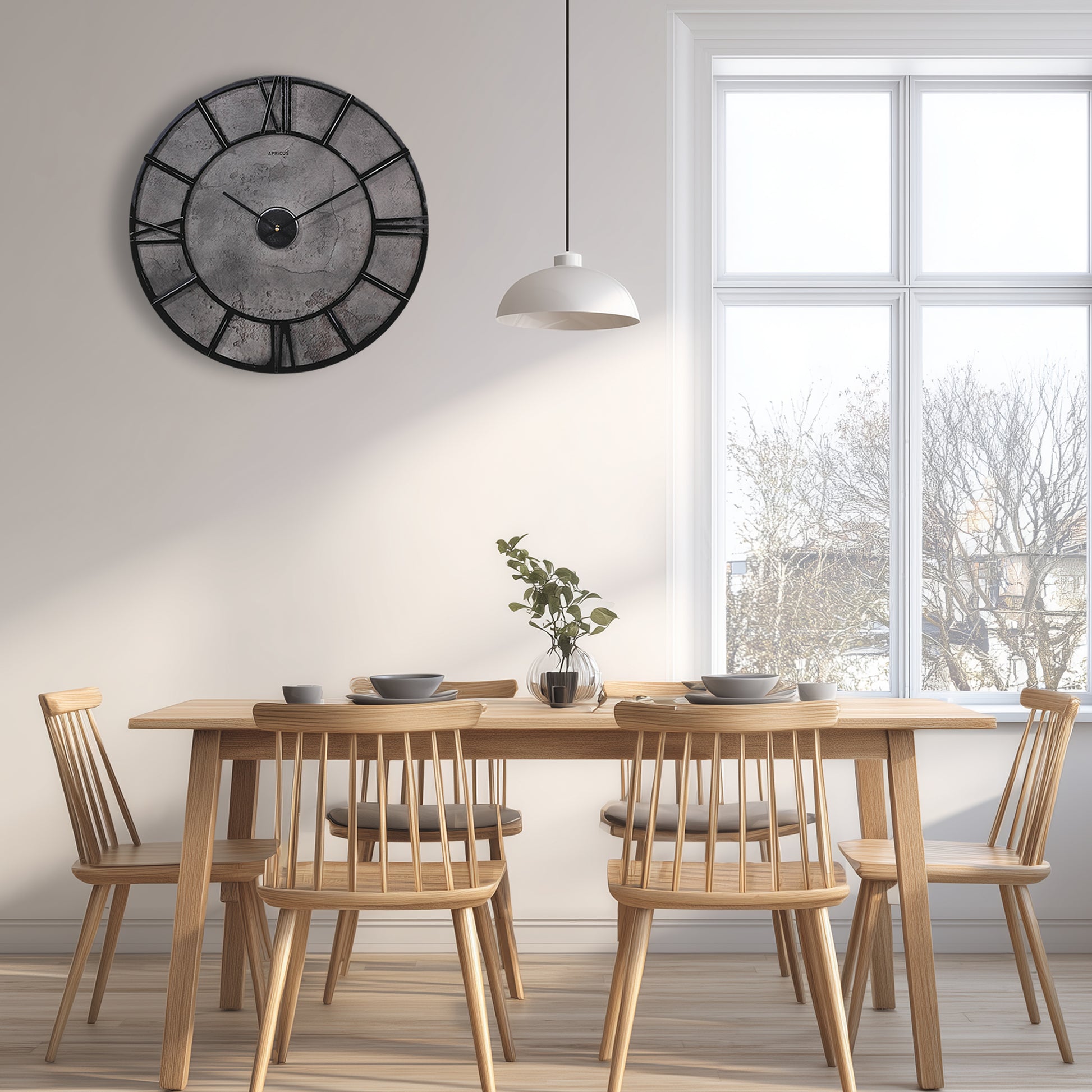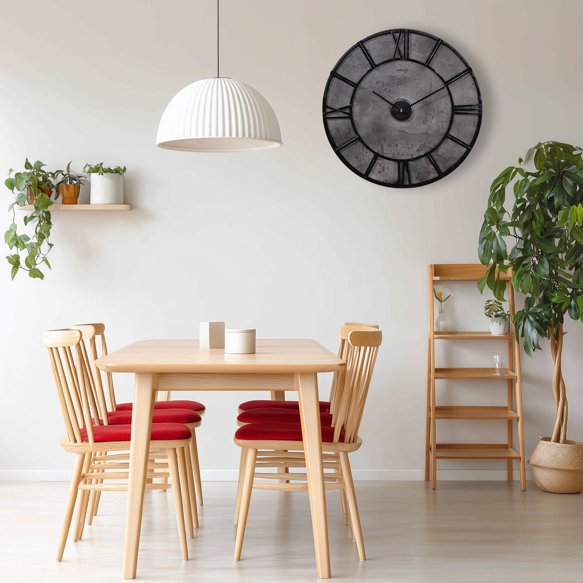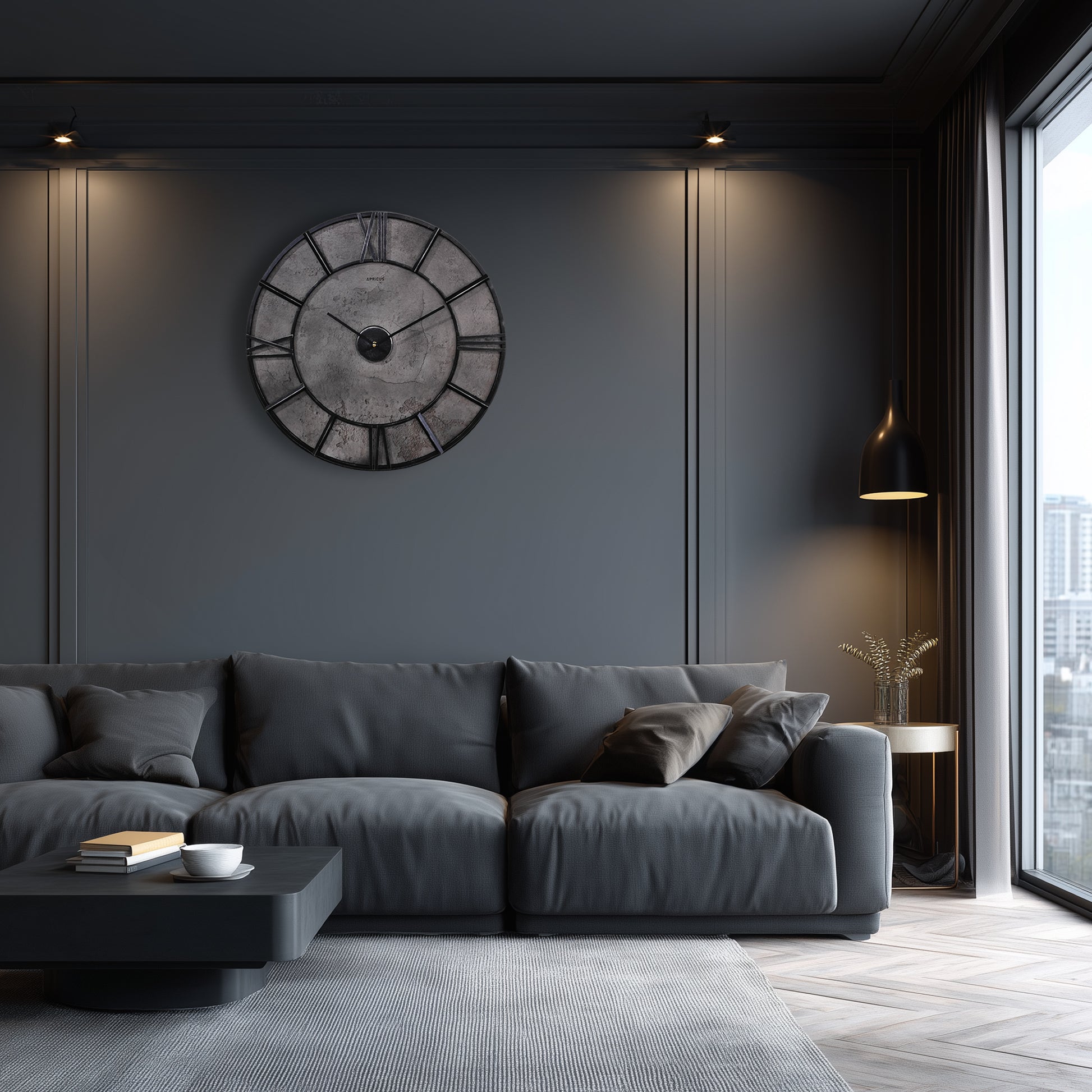 一般的な掛け時計の約2倍近いサイズを誇る、60cmの超大型盤面。壁面を贅沢に使い、ホテルやギャラリーのようなダイナミックな空間演出を可能にします。