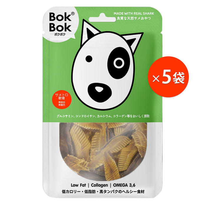 BokBok(ボクボク)は、サメを主原材料に使用した、タイランド産の犬用サメおやつです。サメ肉は低カロリー、低脂質、高タンパク質で、サメ軟骨は健康をサポートする成分がたっぷり含まれており、人間用サプリメントが注目されているのと同様、幼犬から老犬、幼猫から老猫まで幅広い世代に適した食材です。