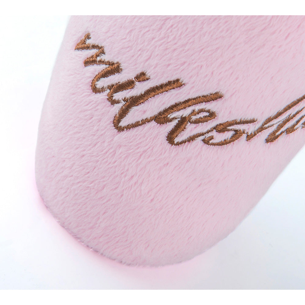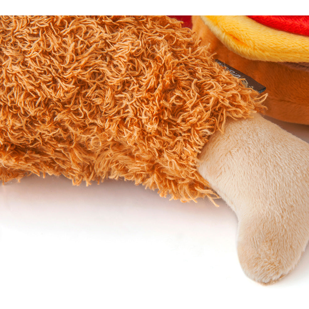 ベロア製で肌触りがよく、ワンちゃんの興味を惹きつける音も鳴ります。形や触り心地だけではなく、作り方にもこだわっており、子供用品と同等の品質基準で生産しています。少しでも丈夫な作りにするために、生地は2枚重ねにし、縫い目もダブルステッチ(2度縫い)を手作業でしています。
