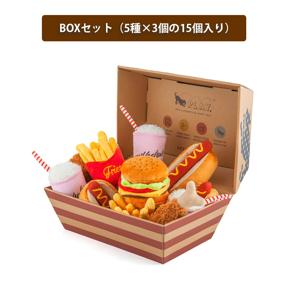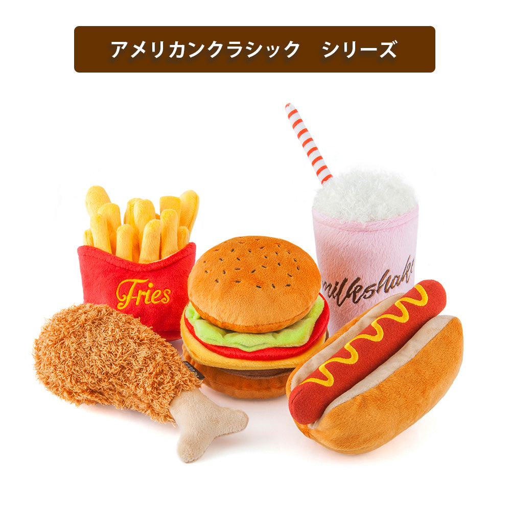 P.L.A.Y.(プレイ)の大人気プラッシュトイ・シリーズ「 American Classic(アメリカンクラシック)」のハンバーガーやシェイク、フライドチキンなら思いっきり齧りついても、カロリーやお口周りのベタベタを気にしなくて大丈夫!