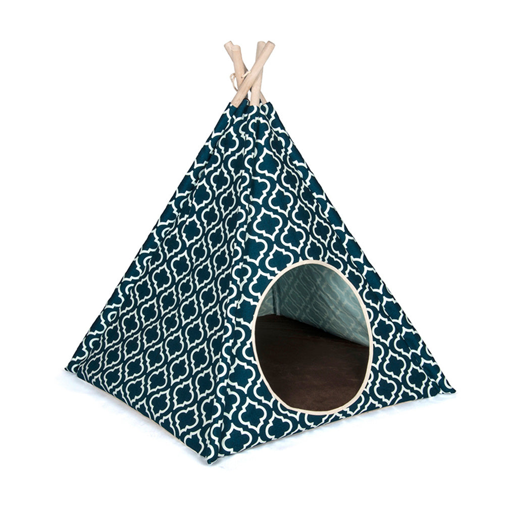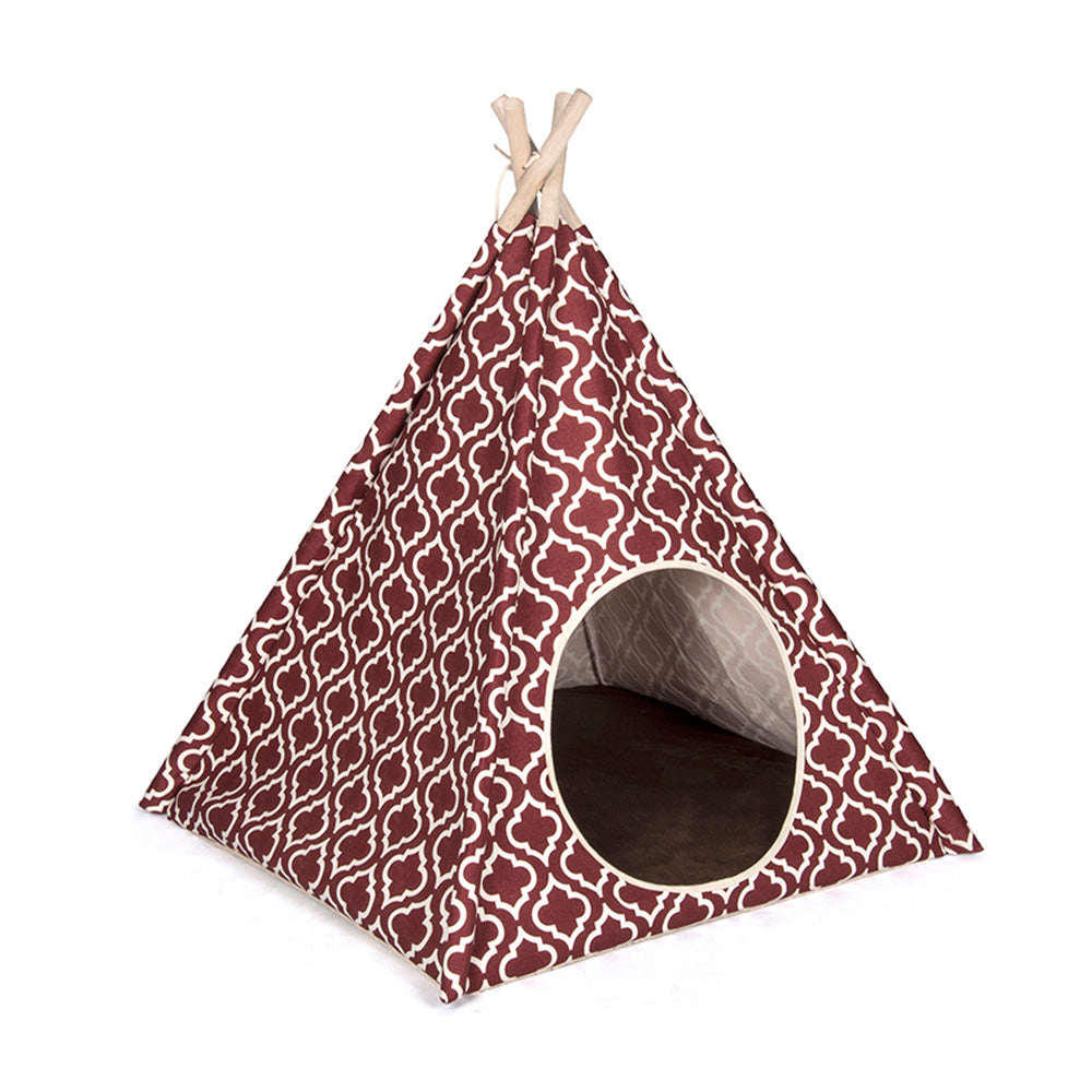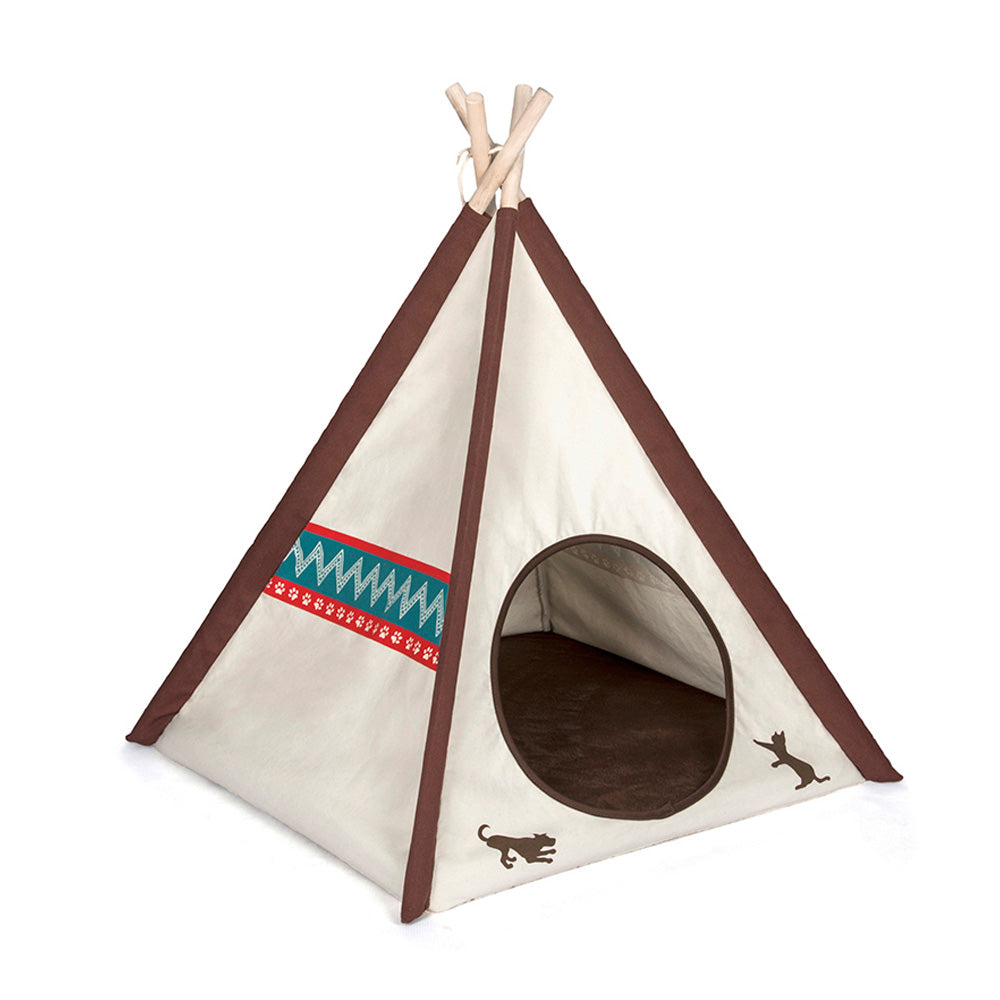 ベッドで使用する高品質ナチュラルコットンキャンバスとパイン材のポールで構成されたおしゃれな室内用テント。囲われた空間は犬猫のリラックス空間となることでしょう。