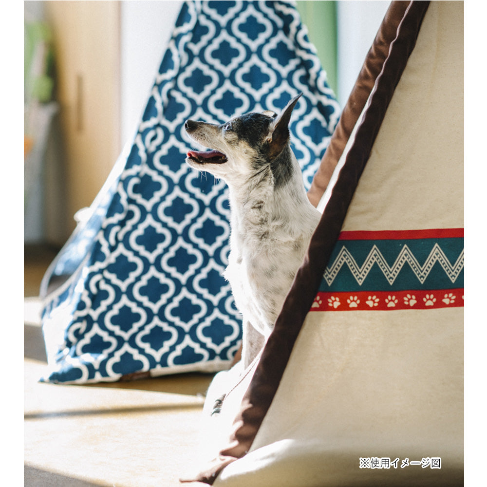 大きめのティピーテントですので、体重5kg程度の犬猫であれば2匹同時に入れるだけの空間です。